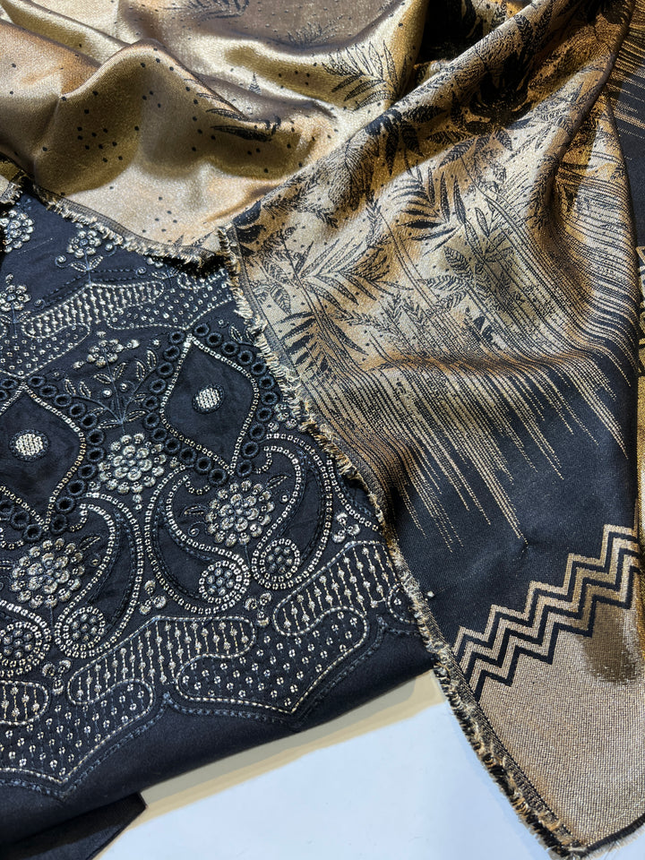 EMBROIDED DHANAK PEACH WOOL 3 pc KAANI SHAWL