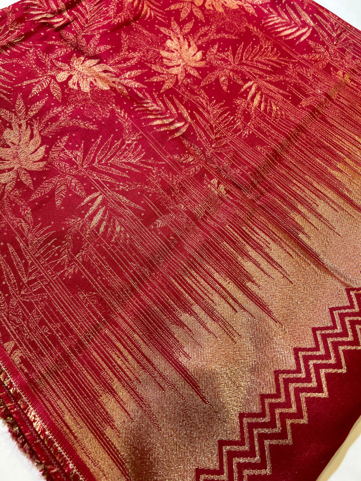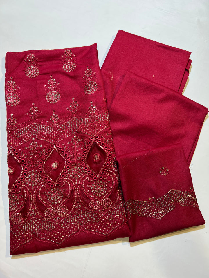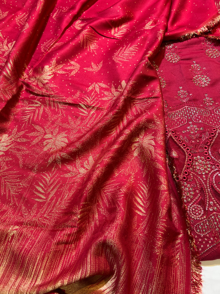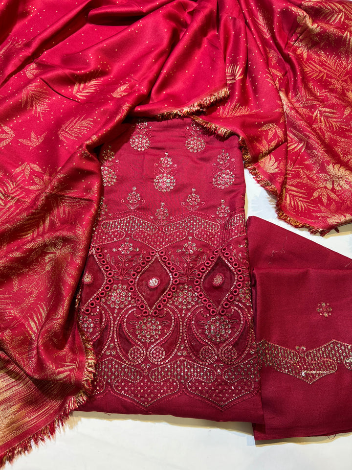 EMBROIDED DHANAK PEACH WOOL 3 pc KAANI SHAWL