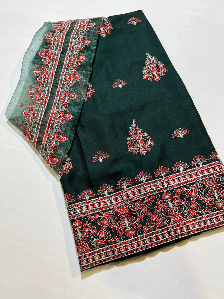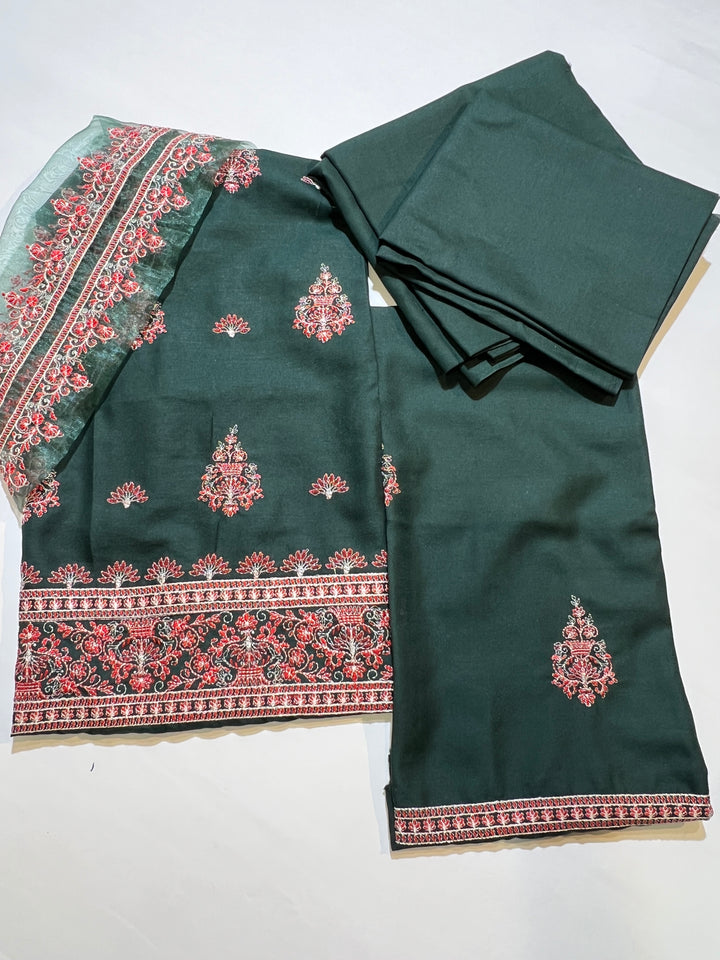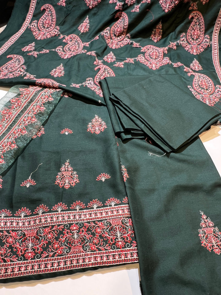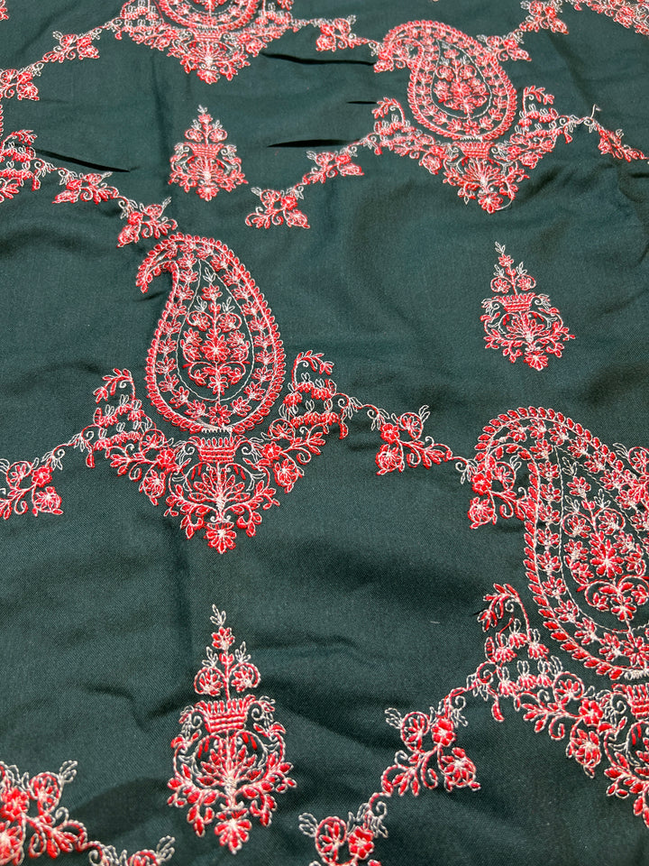 EMBROIDED DHANAK PEACH WOOL 3 pc SHAWL BAREEZAY