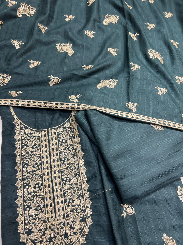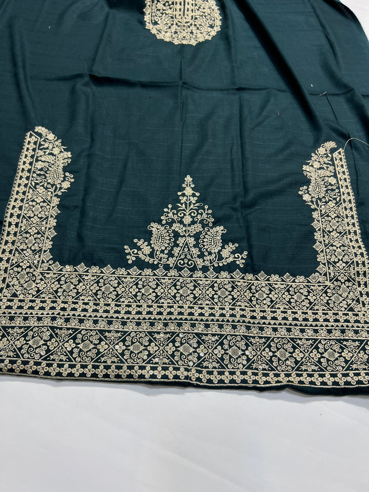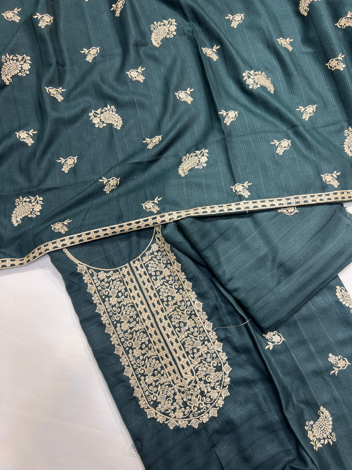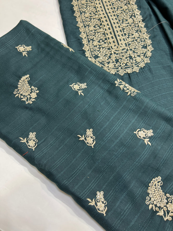 EMBROIDED DHANAK PEACH WOOL 3 pc SHAWL