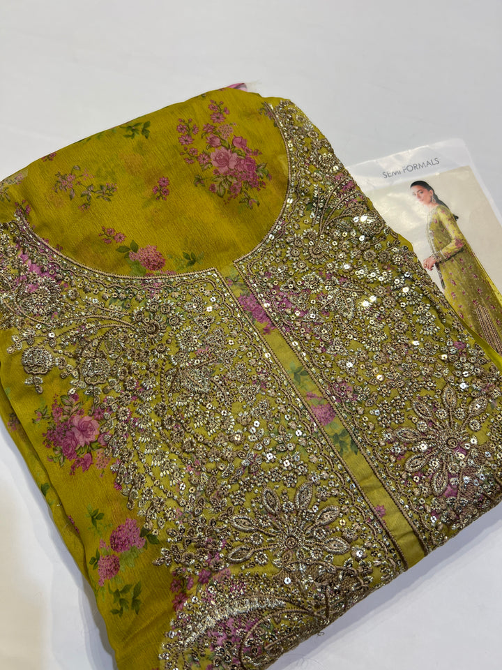 CHIFFON PRINT FULL EMBROIDED SLEEVES