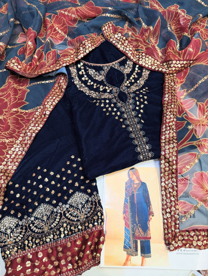Embroided Velvet Front