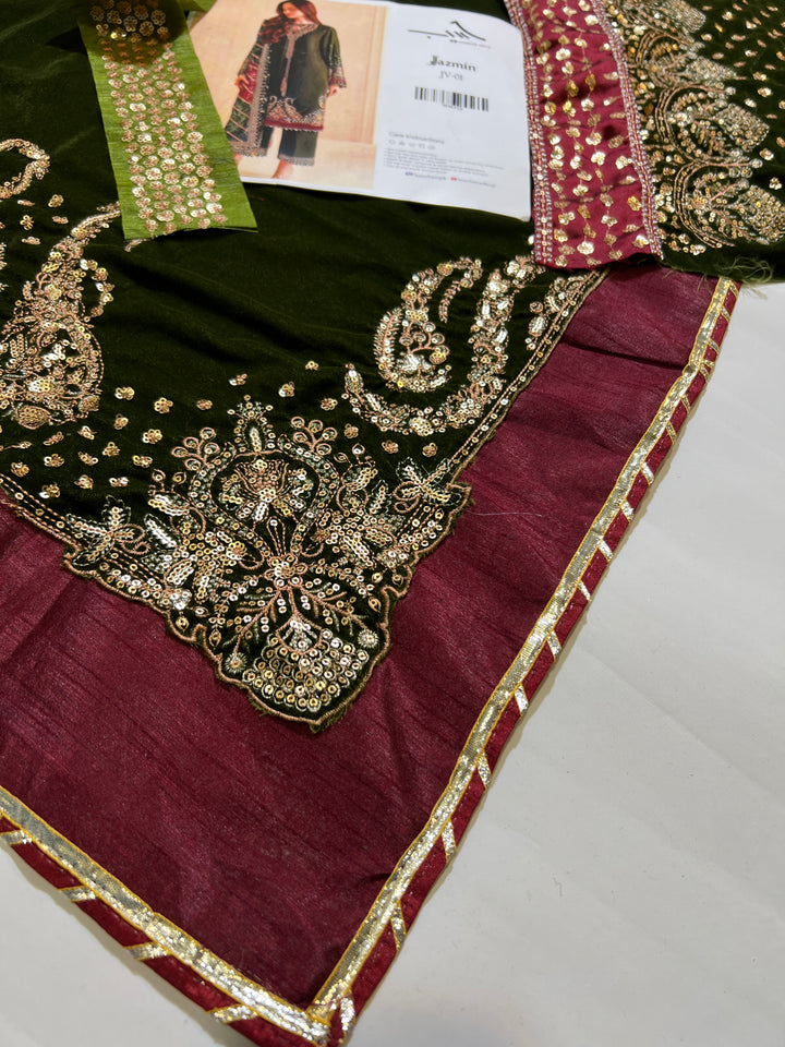 Embroided Velvet Front