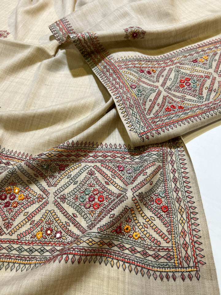 KASHMIRI KACHA TANKA PASHMINA SHISHA WORK SHAWL