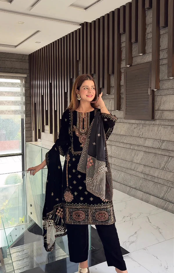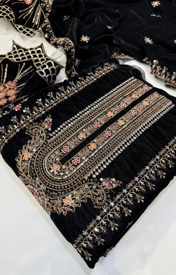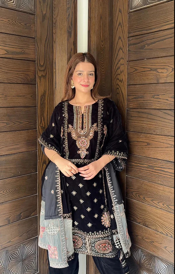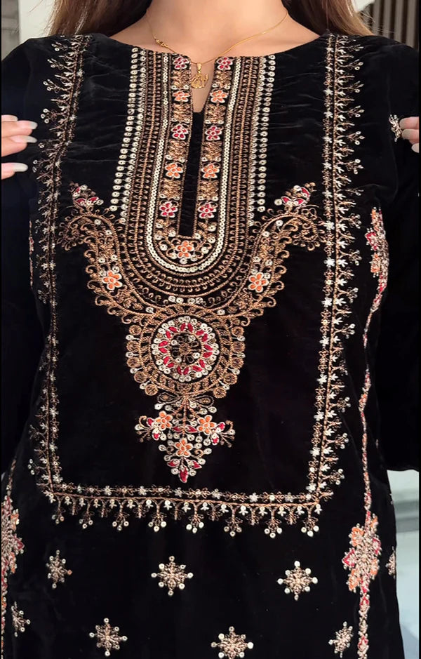 Embroided Velvet Front